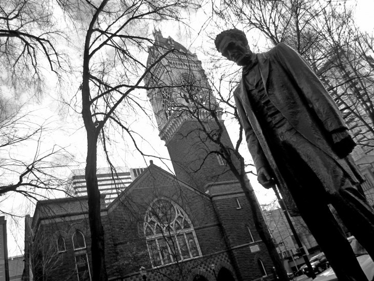 I was in downtown Portland, Oregon today, and I took a couple of photos of this Abraham Lincoln statue that is in what the locals call “the Park blocks.”