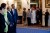 First Lady Michelle Obama curtsies with Lynne Silosky, a niece of posthumous Medal of Honor awardee, Staff Sergeant Robert J. Miller, in the Oval Office