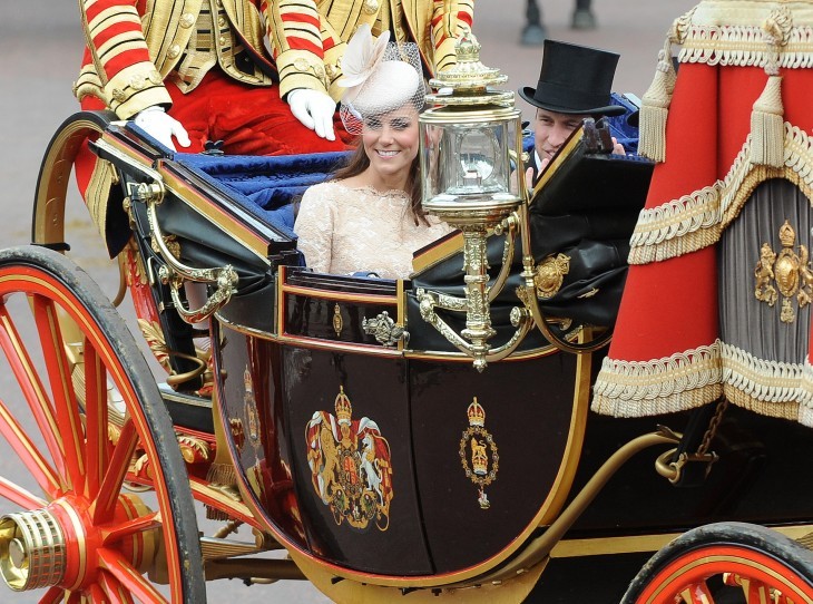 The Duke and Duchess of Cambridge travel through Trafalgar Square on route to Buckingham Palace during the Diamond Jubilee celebrations.