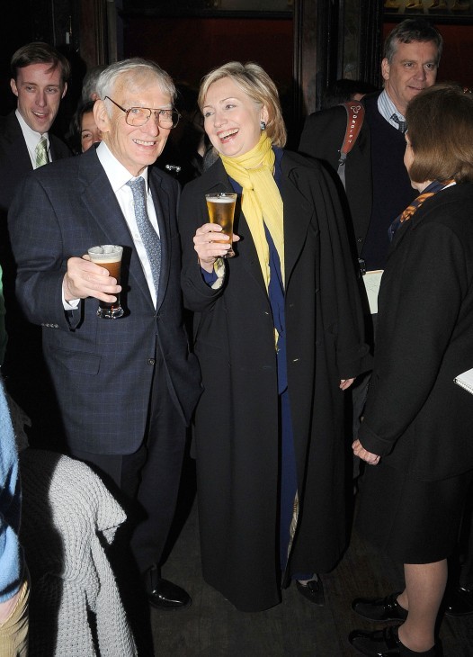 U.S. Secretary of State Hillary Clinton walks along Grafton Street with the Pittsburgh Steelers owner and the new U.S. ambassador to Ireland, Dan Rooney. They stopped at Bewleys Coffee Shop before heading into McDaid's Pub for a drink.