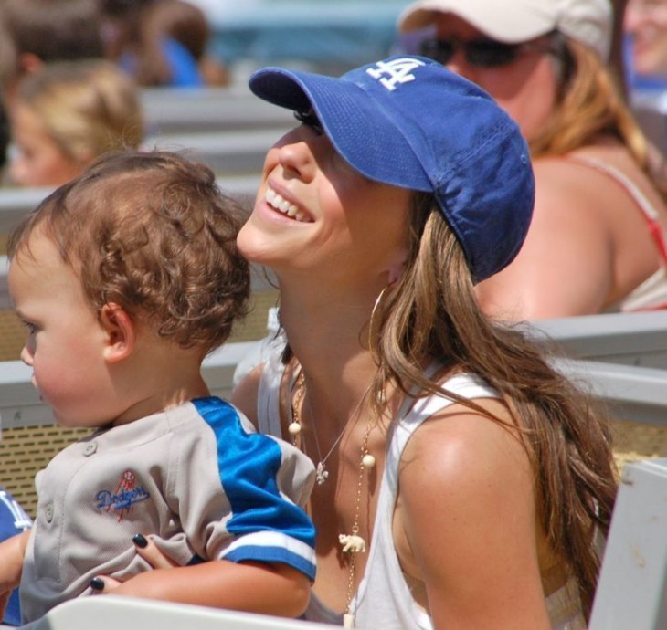 Jennifer Love Hewitt attends the Los Angeles Dodgers versus Chicago Cubs game at the Dodger stadium. The Dodgers won the game, 2-0.