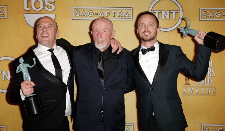 Celebrities pose with awards at 20th Annual Screen Actors Guild Awards press room at The Shrine Auditorium. Featuring: Jonathan Banks,Dean Norris,Aaron Paul Where: Los Angeles, California, United States When: 18 Jan 2014 Credit: Brian To/WENN.com