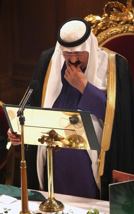 (left to right) Secretary of State for Justice Jack Straw, The Duke of York, King Abdullah of Saudi Arabia and the Lord Mayor John Stuttard stand in the Guildhall before the state banquet