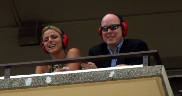 Prince Albert II (right) and his girlfriend Charlene Wittstock wear ear-protecting headphones while watching the 5th Historic Grand Prix Of Monaco. The noisy event took place in Monte Carlo, Monaco on May 21, 2006. The couple were married five years later, in July of 2011.