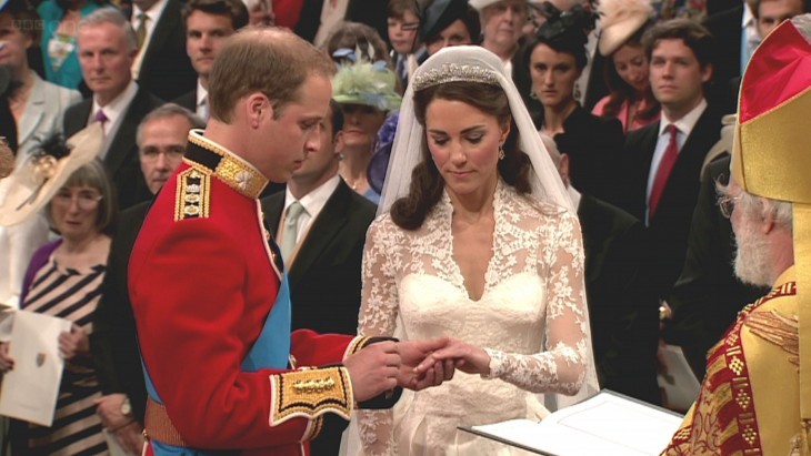 The Duke and Duchess of Cambridge and family, in one of the official Royal Wedding photos released by Clarence House after their wedding on 29 April 2011. This is taken in the Throne Room at Buckingham Palace; Prince William and Kate Middleton (TRH The Duke and Duchess of Cambridge) are at center.