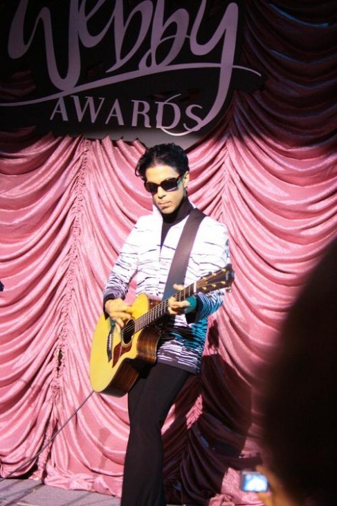 Musician Prince performing on stage before accepting a lifetime achievement award at the 10th Annual Webby Awards held at Cipriani Wall Street