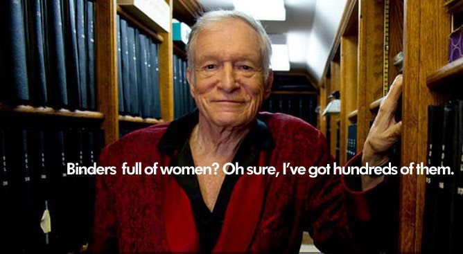 Instead of Romney’s comment causing outrage, it caused a humor explosion on the internet. Romney should immediately take credit for creating jobs — hatchet jobs! Here we go, with a sampling of what “Binders With Women” has started. First, our very own creation: