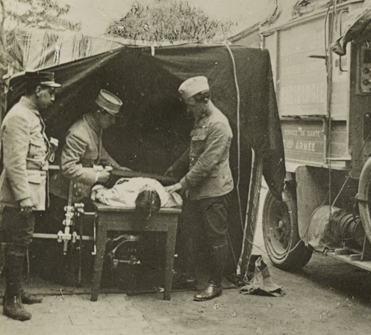 Not content just to send out her trainees to the battlefront, Curie herself had her own “little Curie” – as the radiological cars were nicknamed – that she took to the front. This required her to learn to drive, change flat tires and even master some rudimentary auto mechanics, like cleaning carburetors. And she also had to deal with car accidents. When her driver careened into a ditch and overturned the vehicle, they righted the car, fixed the damaged equipment as best they could and got back to work.