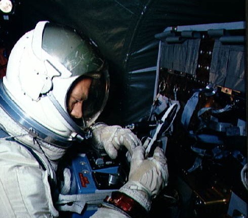 It was the last of the Gemini Program missions. The crew consisted of James A. Lovell, Jr., the commander, and Edwin E. “Buzz” Aldrin, Jr., the pilot. The back-up crew was L. Gordon Cooper, Jr. and Eugene Cernan. All four have their place in the history of space flight. Lovell went on to be a member of the Apollo 13 moon mission; Buzz Aldrin was on Apollo 11 and was the second human to step foot on the moon (after Neil Armstrong); Gordon Cooper was one of the original seven Mercury astronauts and, in 1963, became the first person to use a TV camera in space; and Eugene Cernan was on the Apollo 17 mission and was the last American to step off the lunar surface.